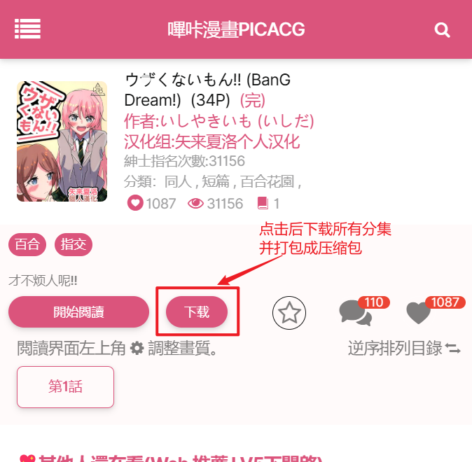 推荐打开梯子下载,不然下载很慢,还容易出错少图。 1.分集选择页面按d下载所有分集。2.阅读时按d下载当前分集。3.漫画详情页面打开新标签页。4.读不到登录信息时跳转到登录页面。5.修复选集页面看不到推荐漫画。6.屏蔽部分广告。